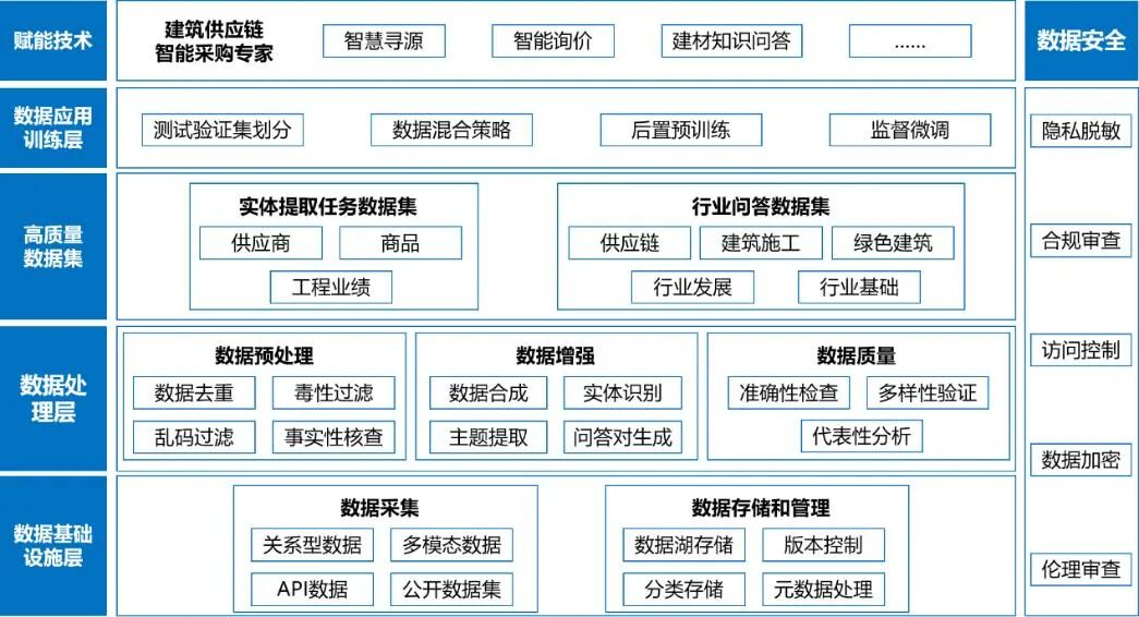 建筑行业供应链数据沉淀了覆盖行业全链条的物资、资金与信用信息,在建筑行业具有重要支撑价值。针对供应链条长、参与主体多、协同效率低等突出问题,中建集团依托云筑网基础数据,围绕建筑供应链关键场景,协同中国电子数据产业集团构建了高质量数据集建设与评测体系,形成了一套面向“可直接用于人工智能训练”的建筑行业供应链高质量数据集,并应用于建筑供应链大模型垂类模型训练,满足包括供应链智慧寻源,智能询价和建材知识问答等需求。