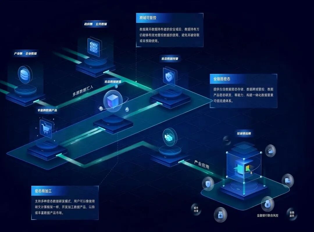 创新建立“政企银”协同模式:代码中心统筹数据,技术方提供密算引擎,金融机构开发“数据增信贷”产品,实现信用分实时转化信贷额度和利率优惠幅度。该生态兼顾数据安全与价值释放,形成供给、赋能、应用闭环,为数字中国建设提供坚实的数据基础设施支撑。