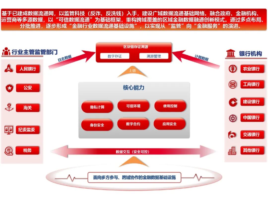 本案例聚焦金融行业数字化转型中的“数据孤岛”难题,建设金融数据流通基础设施。平台以“三统一”为原则,融合隐私计算、区块链和人工智能等技术,打造多层次能力底座,构建“数据不出域”的联合分析环境,实现跨机构、跨区域的安全共享与可信流通,全面提升数据安全性与合规性。平台通过多方安全计算和联邦学习实现大规模节点间的联合统计与建模,兼顾效率与隐私保护。同时依托区块链的不可篡改与全程留痕特性,实现数据使用过程可验证、可监管。作为金融数据流通的基础设施,平台聚焦反电信诈骗、反洗钱、普惠金融等场景,已接入人民银行、公安机关、商业银行、征信机构、运营商等40余个节点,归集近百亿级数据,形成涵盖10个主题域、70余类模型的应用体系,累计生成大量预警与劝阻线索,有效防范经济损失,显著提升跨机构协作效率与风险防控能力,成为监管科技和社会治理的重要数字底座。