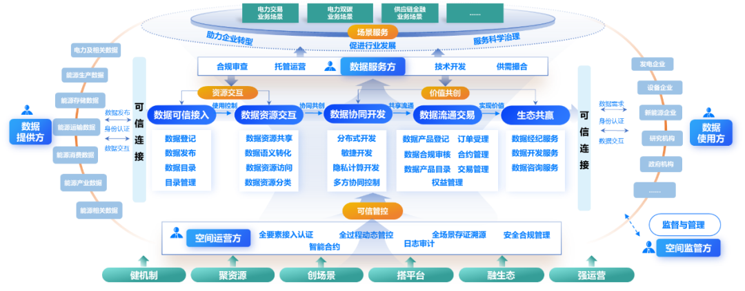 健全数据流通规则:协同上下游龙头企业,建立涵盖准入认证、资源交互、共享利用等环节的运营规则,形成统一接口协议与身份标识标准,确保能源数据在跨系统、跨主体流通过程中实现可信互通、高效协同。