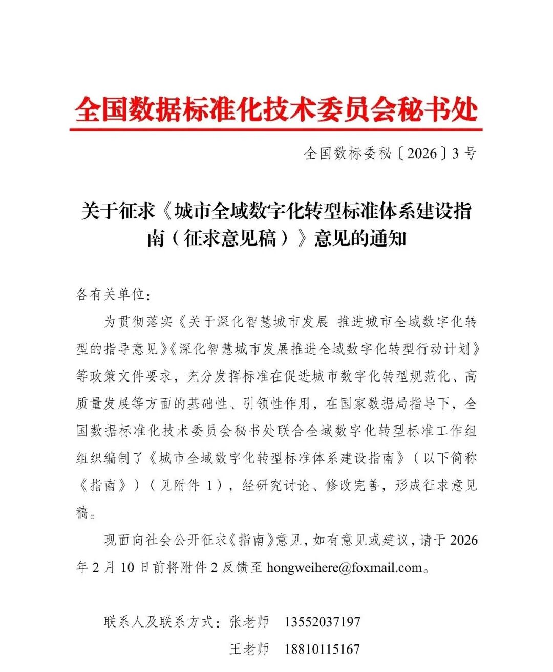 现面向社会公开征求《指南》意见,如有意见或建议,请于2026年2月10日前将附件2反馈至hongweihere@foxmail.com。