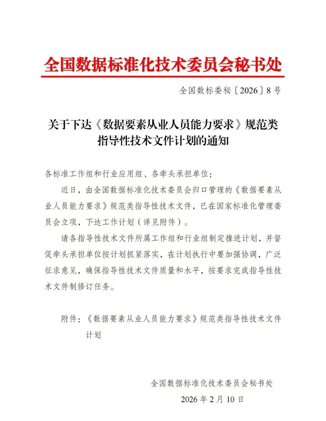 近日,由全国数据标准化技术委员会归口管理的《数据要素从业人员能力要求》规范类指导性技术文件,已在国家标准化管理委员会立项,下达工作计划(详见附件)。 请各指导性技术文件所属工作组和行业组制定推进计划,并督促牵头承担单位按计划抓紧落实,在计划执行中要加强协调,广泛征求意见,确保指导性技术文件质量和水平,按要求完成指导性技术文件制修订任务。