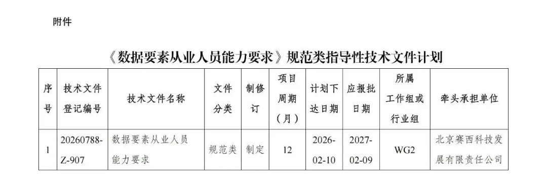 附件:《数据要素从业人员能力要求》规范类指导性技术文件计划